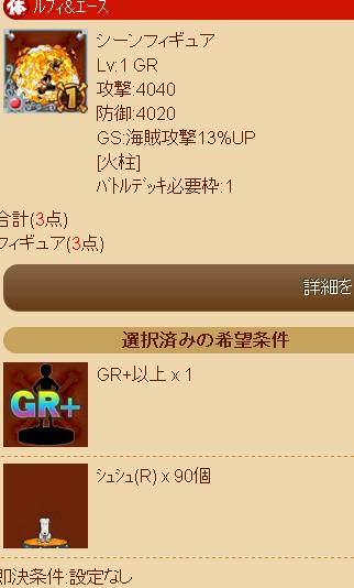 ちなみに、ルフィエース2代目は肉90以下の出品も見かける事もありますが、今のところは肉90と思って安いのは買っておけばいいかなと思います。