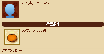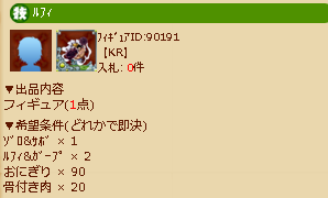 まあおにぎりが欲しい場合には、おにぎり40か、あめ300か、みかん200、こんな出品はありだったかなと思います。