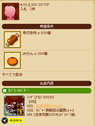 ぼちぼち肉500で即決なども出てくる・・・と思いますが、早い段階であれば上記のような感じでみかん300くらいずつなら稼げます。