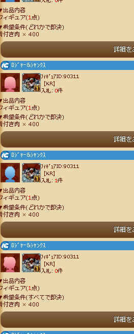 まあ今は2ページくらいの出品しかなく、肉400の出品や、肉380くらいですかね、そんな出品も出ていて、売れているようでした。