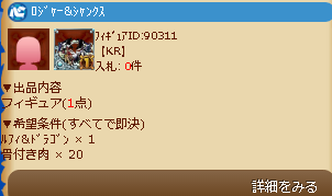 まあ私の場合であればとりあえず200でも疑わしいので(笑)、ロジャーシャンクスを出品して、ティーチハンコミホ+肉200、のような感じで様子を探ります。