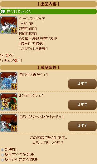 今回のシャンクスルー、ルフィシャンクスが400件ほどです。(レートは肉3あたり)