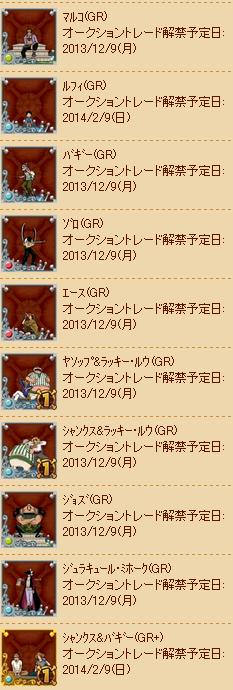 課金ガシャのGR以上は2月9日、銅の宝箱のルフィも2月9日(笑)