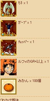 ラストがルフィのGR+以上ですが、麦わら一味20%の2体が大体みかん150といったところでしょうか。